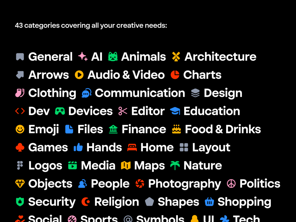 • 🔍 Smart organisation – Comprehensive tagging makes finding icons effortless